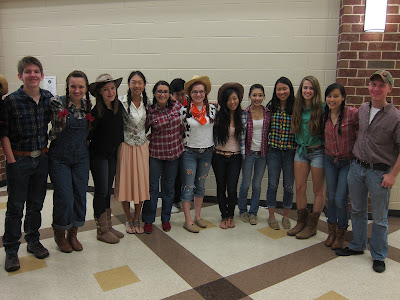 Celebrating class themes! Seniors wore Caribbean clothes while juniors dressed up in their Asian attire.